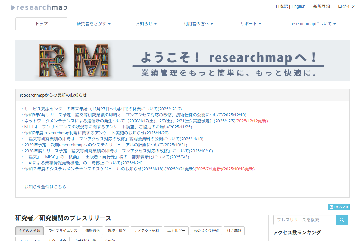 研究業績管理のためのサービスにはすでにresearchmapがあります。researchmapは研究者が自身のアカウントに経歴、論文、所属等の情報を記録でき、共有できるサービスです。